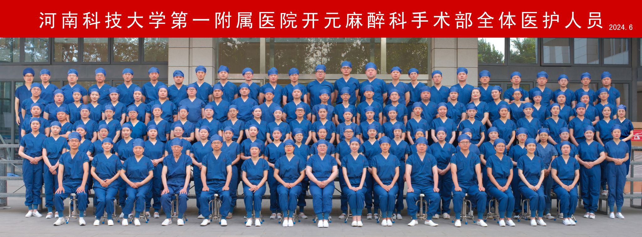河南科技大学一附院开元院区麻醉科共有医护人员155名:麻醉科医生27名,医学博士1名,硕士研究生16名,本科8名,硕士研究生导师1名,正高1名,副高5名,主治医师9名,住院医师12名,护理团队119人,主任护师1人、副主任护师1人、主管护师10人、护师16人、护士17人,本科学历35人,专科学历10人。具有良好的人才梯队。现代化净化手术间28间,麻醉恢复床位15张,术前准备间1间,日间手术间3间(门诊),开设麻醉科门诊、疼痛病房、AICU、无痛舒适化诊疗等。