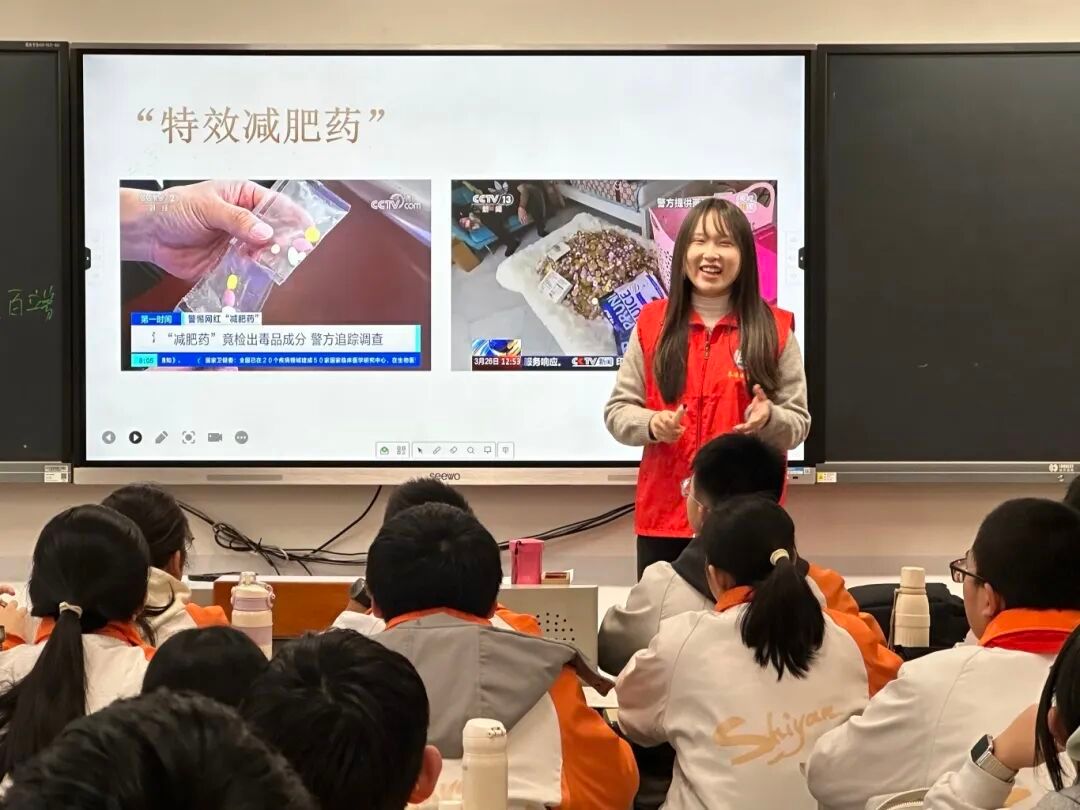 “很多青少年之所以陷入药物滥用,是因为他们不了解——某些‘聪明药’‘减肥药’实为管制精神药品,不仅无法‘提升成绩’‘快速瘦身’,还可能严重损害身心健康。”实践队指导老师、医学博士在讲解中指出。活动中,团队重点解析了利他林、右美沙芬等常见被滥用药物,以及伪装成“饮料”“糖果”“笑气”的新型毒品,引导学生树立“非医嘱不用药、不明物不触碰”的警觉意识。