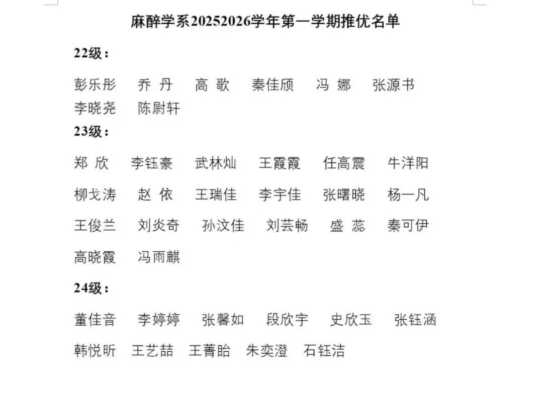 麻醉学系2025年—2026年第一学期“推优”名单汇总表